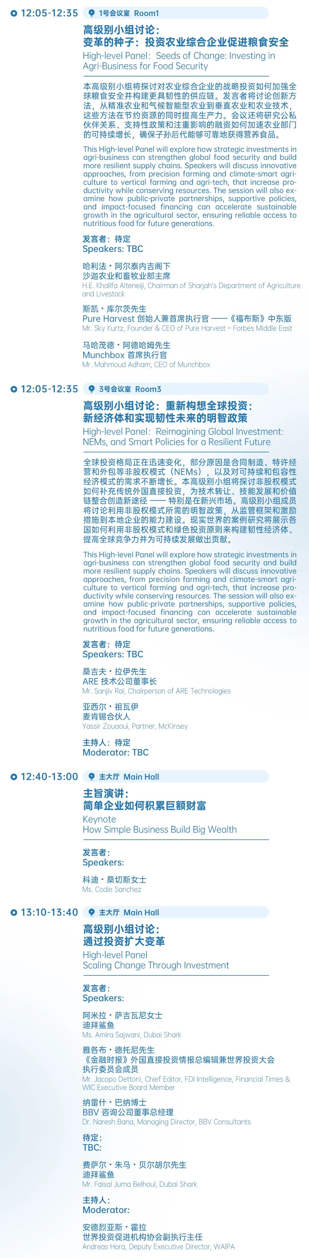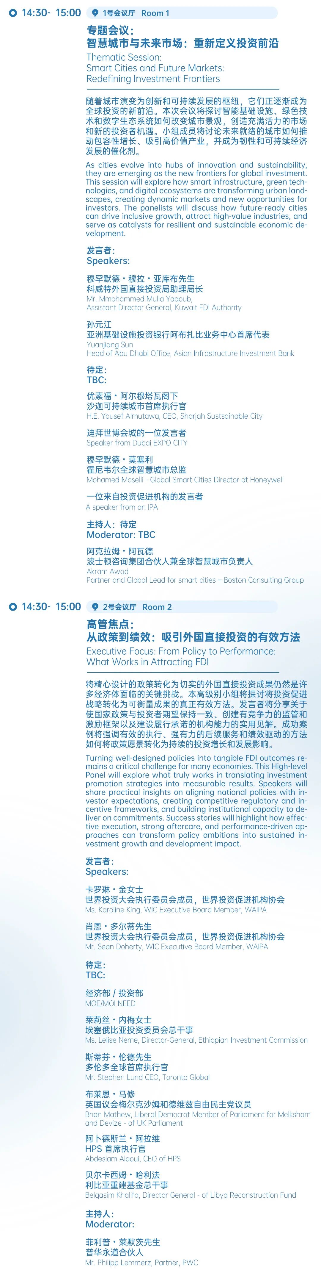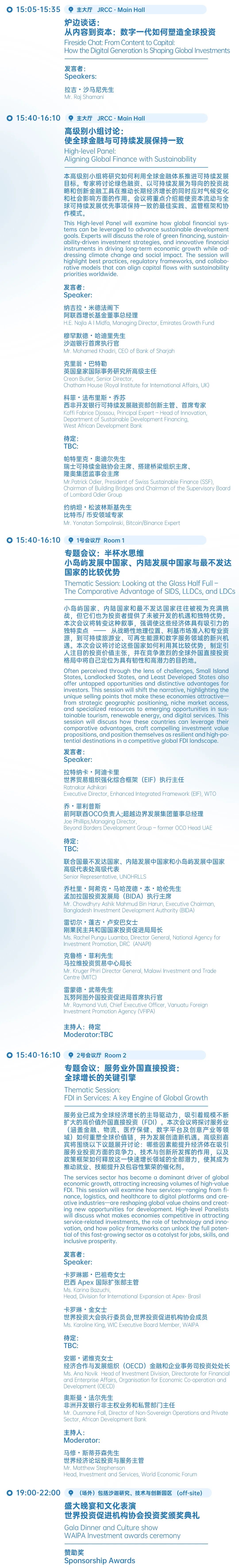 第29届世界投资大会暨第8届沙迦投资论坛将于2025年10月21日至23日在阿联酋沙迦举行。今年也是世界投资促进机构协会(The World Association of Investment Promotion Agencies, WAIPA)成立30周年。这两项活动将由世界投资促进机构协会、沙迦FDI办公室和阿联酋投资部联合举办。