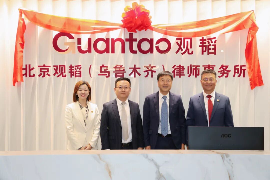 乌鲁木齐市律师协会会长金小孟、观韬律师事务所管委会主任崔利国、观韬乌鲁木齐办公室主任杨天斌与负责人黄乐共同为“北京观韬(乌鲁木齐)律师事务所”揭牌。
