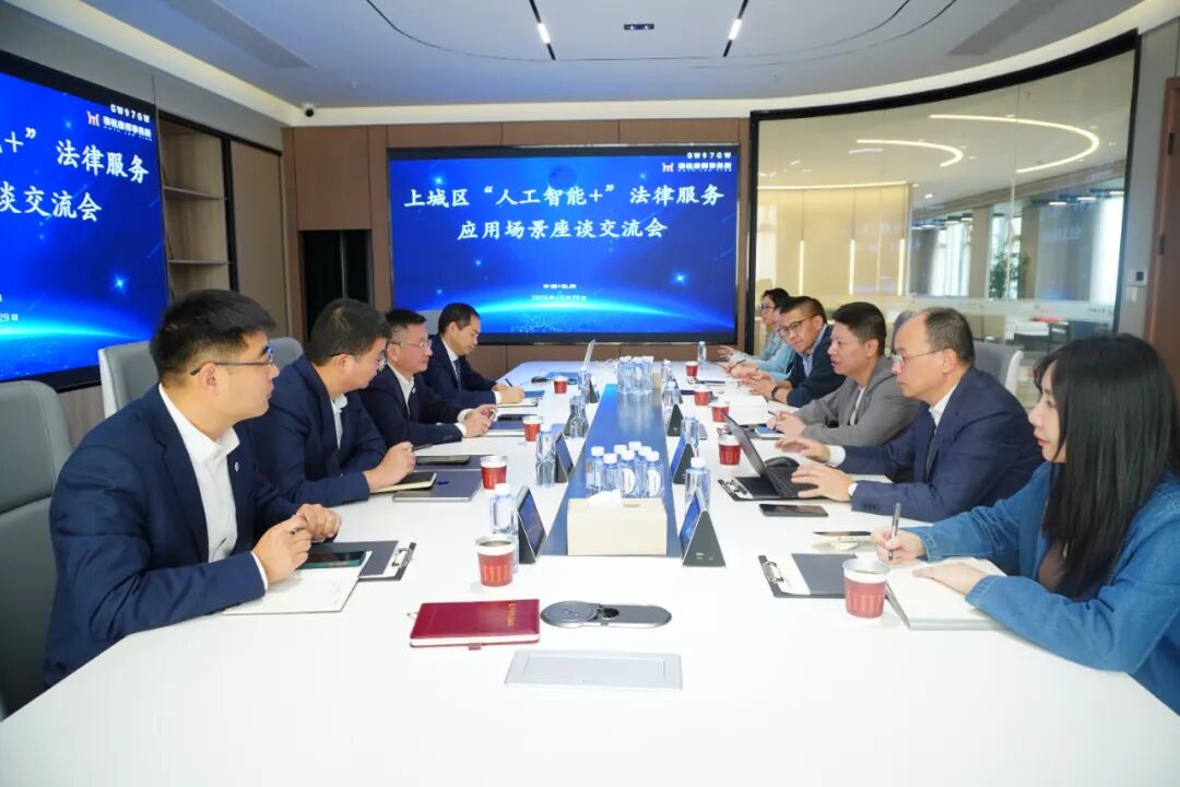 在此背景下,2025年10月29日下午,上城区司法局局长胡晓,党委委员、副局长高宏,杭州市律协副会长兼上城分会会长周春,上城区司法局律工科科长章寅莹,以及杭州市律协上城分会副秘书长刘晓莲等一行莅临泰杭所围绕“人工智能+”法律服务应用场景开展考察交流。全联并购公会副会长、泰杭所主任汪政,执行主任罗绍康,管委会主任张会佳,监委会主任周世明,数字中心主任李健青接待并参加座谈。