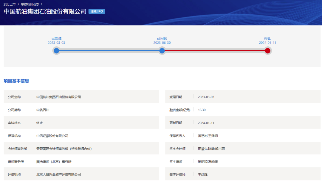 记者注意到,中国航油控股的另一家公司,中国航油集团石油股份有限公司(简称“中航石油”)曾在2020年递交IPO申报材料,但在2024年1月,公司和保荐人主动“撤单”。截至IPO终止,中航石油未回复首轮问询。