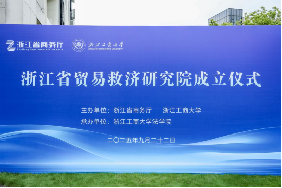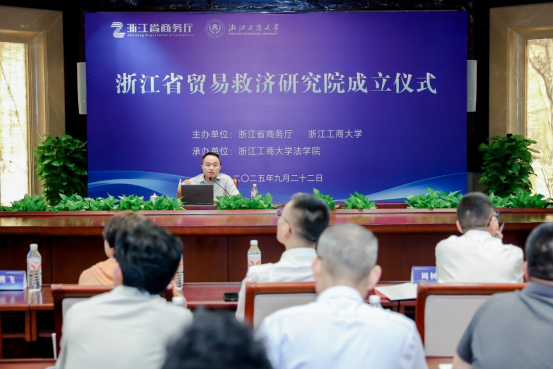 2025年9月22日下午,浙江省商务厅、浙江工商大学主办,浙江工商大学法学院承办的浙江省贸易救济研究院成立仪式在浙江工商大学国际会议中心隆重举行。商务部贸易救济调查局二级巡视员李智、浙江省商务厅党组成员方晓、浙江工商大学副校长俞绍才等领导嘉宾、专家学者与涉外律师、党政机关代表、省级对外贸易预警点代表等近百人出席会议。