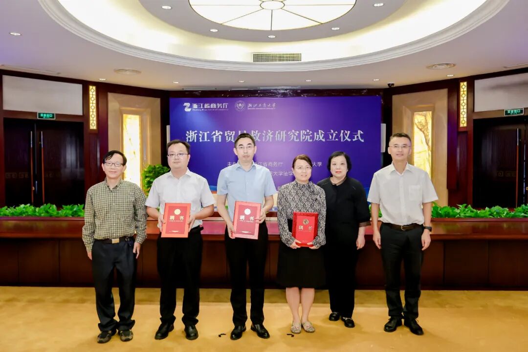 浙江省商务厅党组成员方晓、浙江工商大学副校长俞绍才为“浙江省贸易救济研究院”揭牌,并聘任浙江工商大学法学院院长宋杰担任院长、刘京莲副教授担任副院长、房旭特聘副教授担任秘书长。