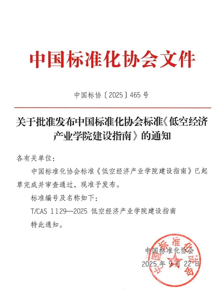 近期,依据中国标准化协会发布的相关文件要求,由全国航空职业教育合作联盟发起、全联并购公会副会长单位江苏无国界航空发展有限公司牵头组织编制的《低空经济产业学院建设指南》,经过严格的专家评审与合规审查,已荣获中国标准化协会的正式批准并发布。